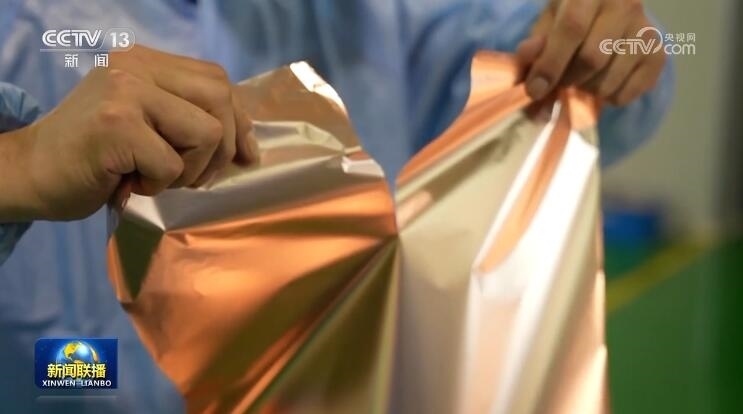 在這家國家級(jí)專精特新企業(yè)的車間里,生產(chǎn)的依舊是以銅為基礎(chǔ)的銅箔,但是質(zhì)感卻像紙巾一樣柔軟,甚至可以輕易撕開。這里面最薄的只有3.5微米,達(dá)到了世界先進(jìn)水平。產(chǎn)品主要用在新能源汽車的動(dòng)力電池上,企業(yè)的定位也變成了鋰電新材料產(chǎn)業(yè)。