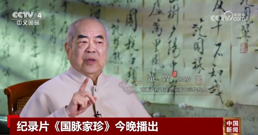 紀(jì)錄片《國(guó)脈家珍》從南通范氏詩文世家第十三代傳人范曾的視角,還原家族成員個(gè)性鮮明、造詣深厚的傳奇故事。他們或居于廟堂,持守高風(fēng)峻節(jié),或隱于江湖,揮灑豪詩雄文,呈現(xiàn)“國(guó)運(yùn)與家事榮辱相伴,時(shí)局與詩筆悲喜相連”的人物命運(yùn)。該片結(jié)合歷代傳人的詩文,反映中國(guó)傳統(tǒng)文化綿延不息,展現(xiàn)范氏家族家風(fēng)家教的細(xì)節(jié),探尋其延續(xù)的密碼。