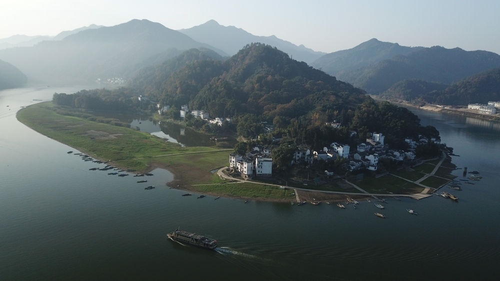 這是2019年11月16日拍攝的位于安徽的新安江山水畫廊(無(wú)人機(jī)照片)。新華社記者 張端 攝