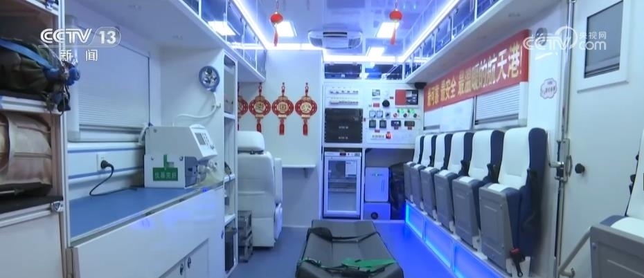 酒泉衛(wèi)星發(fā)射中心醫(yī)院航天員院外醫(yī)療救護(hù)隊隊員 喬陽:醫(yī)監(jiān)醫(yī)救車它最大的優(yōu)勢是具有獨立清潔私密的空間,可以確保航天員醫(yī)監(jiān)醫(yī)保程序的私密性。它具有獨立的衛(wèi)生間,便于航天員樣本的采集;有監(jiān)護(hù)設(shè)備,便于航天員生理數(shù)據(jù)的采集和記錄;有醫(yī)療急救裝備,便于醫(yī)監(jiān)醫(yī)保和醫(yī)療救護(hù)程序之間的轉(zhuǎn)換。醫(yī)監(jiān)醫(yī)救車上還具有擔(dān)架、呼吸機(jī)等各種醫(yī)療設(shè)備,具備了手術(shù)的條件。