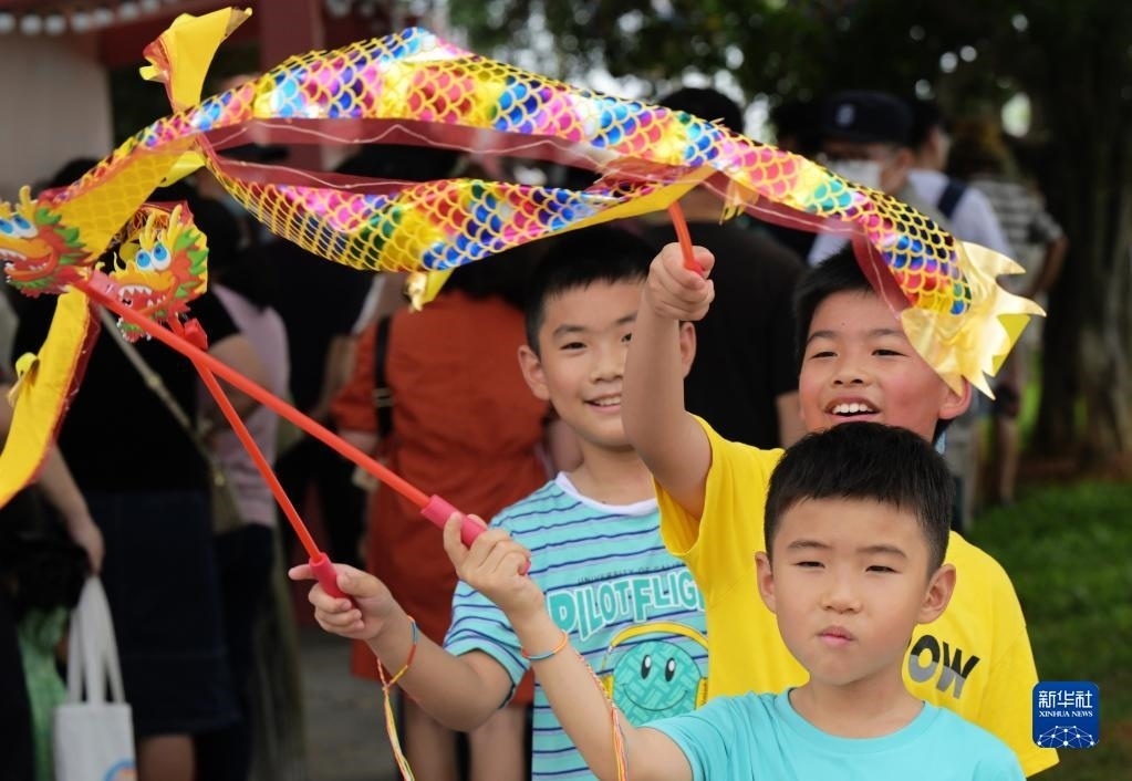 6月3日,廈門小學(xué)生在2023海峽兩岸(集美)龍舟文化節(jié)活動(dòng)現(xiàn)場體驗(yàn)舞龍。