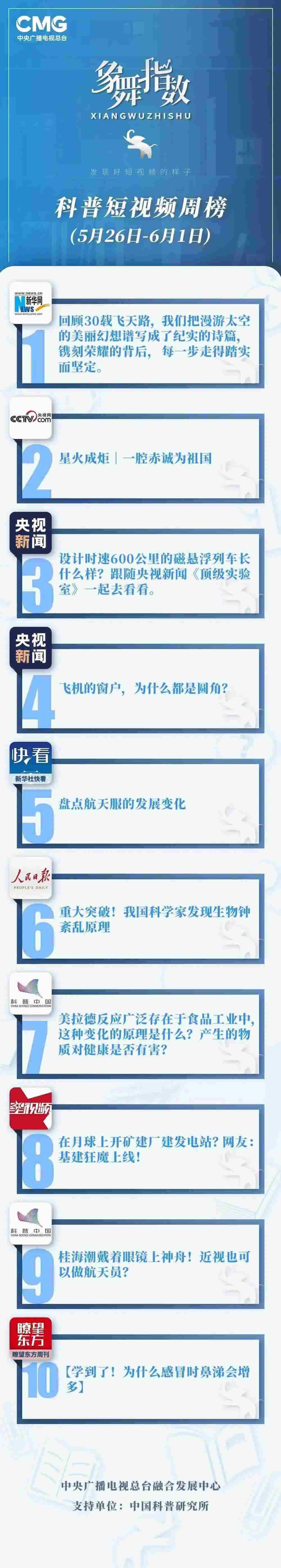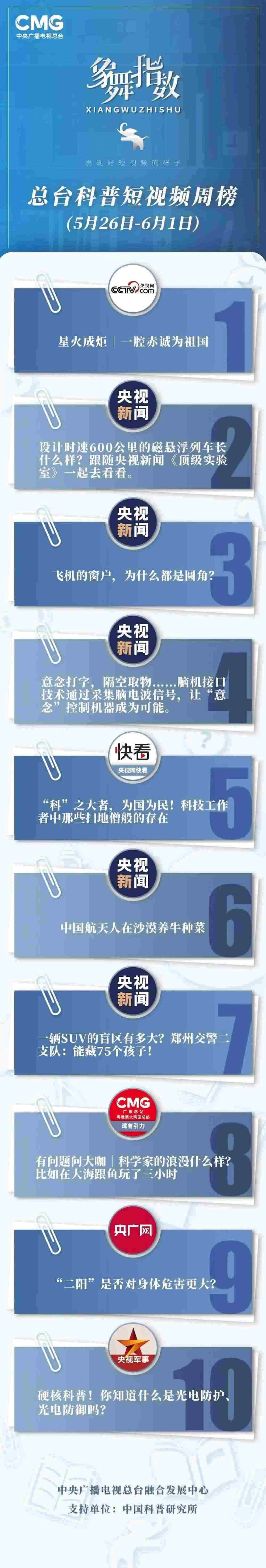 象舞指數(shù)|科普短視頻周榜(5月26日-6月1日)