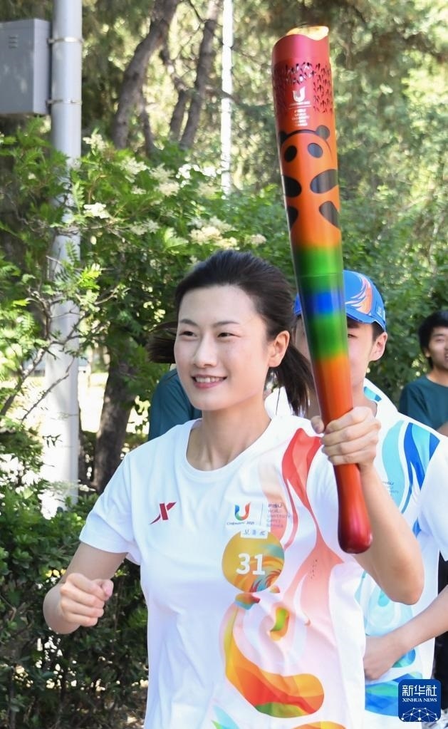 奧運(yùn)會(huì)射擊冠軍、清華大學(xué)學(xué)生楊倩也成為火炬手中的一員?!澳芤曰鹁媸值纳矸輩⑴c到大運(yùn)會(huì)中,我感到非常榮幸,希望通過火炬?zhèn)鬟f,傳遞出大學(xué)生積極向上的精神風(fēng)貌。”