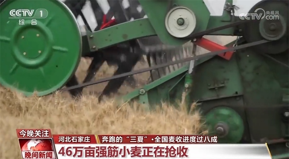 河北省石家莊市藁城區(qū)的46萬(wàn)畝強(qiáng)筋小麥正在搶收,今年這里的小麥進(jìn)一步推行規(guī)?;N植、標(biāo)準(zhǔn)化生產(chǎn)、專業(yè)化收儲(chǔ)。