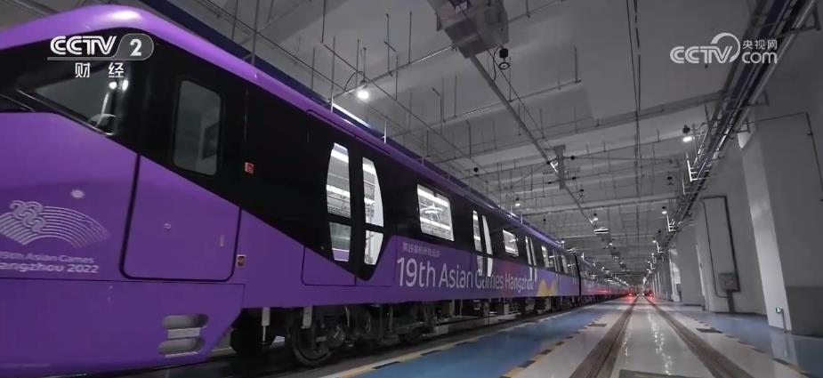 在杭州,5列亞運(yùn)主題地鐵列車正式投入運(yùn)營。車身以及車廂內(nèi)的座椅、扶手,均為亞運(yùn)會色系中的“虹韻紫”。