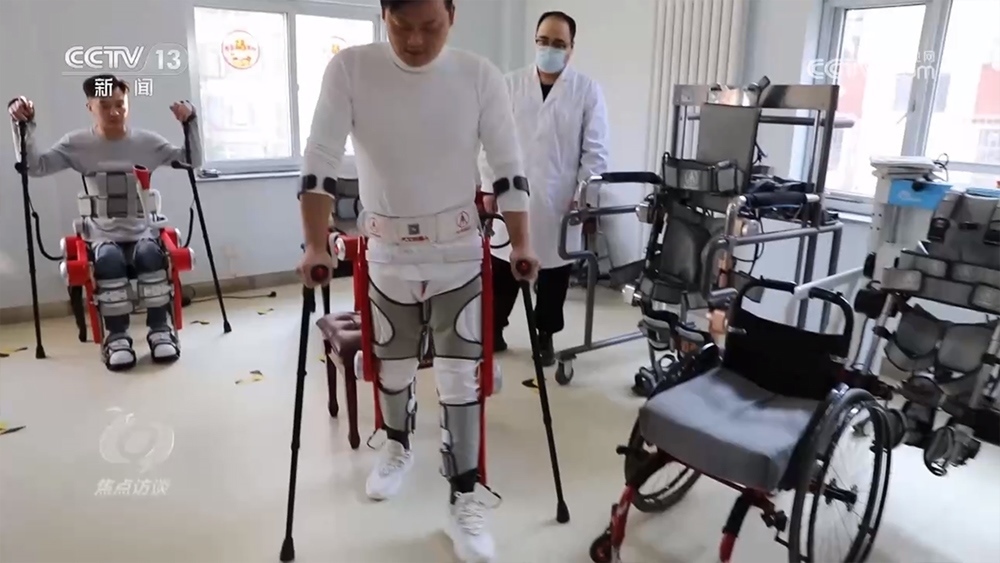 在北京豐臺的一家康復治療中心里,一些原本行動困難的患者,正在學習如何在外骨骼機器人的幫助下恢復行走。