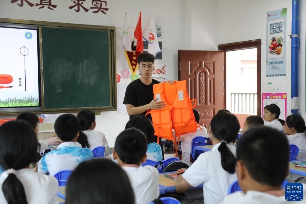 暑期臨近,江西省南昌市各縣區(qū)中小學(xué)校紛紛開(kāi)展暑期安全教育主題活動(dòng),通過(guò)防溺水安全主題班會(huì)、安全知識(shí)培訓(xùn)、自救技能培訓(xùn)等方式提升學(xué)生的安全意識(shí)與防范危險(xiǎn)能力,讓孩子們度過(guò)一個(gè)安全快樂(lè)的假期。新華社記者 彭昭之 攝