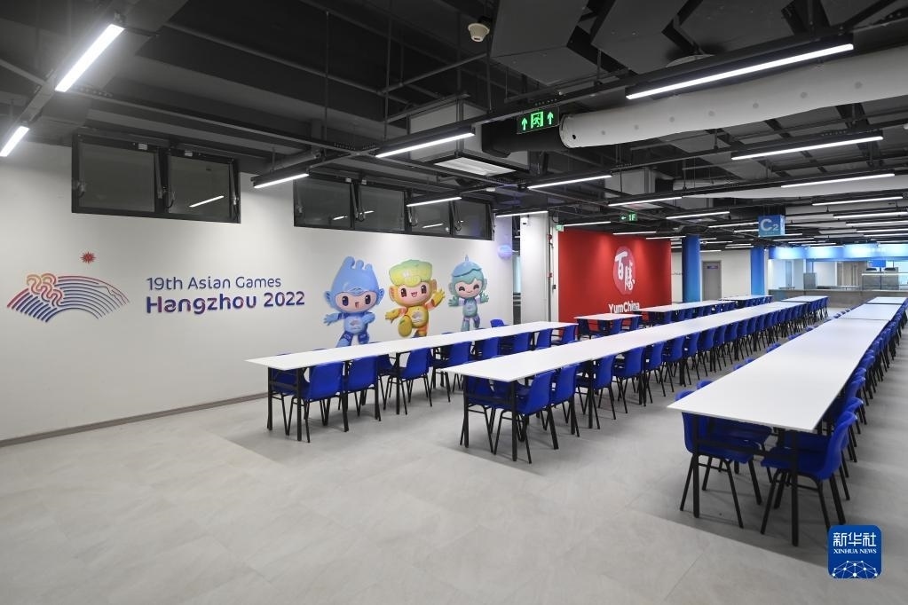 這是6月16日拍攝的杭州亞運(yùn)村運(yùn)動(dòng)員餐廳內(nèi)景。