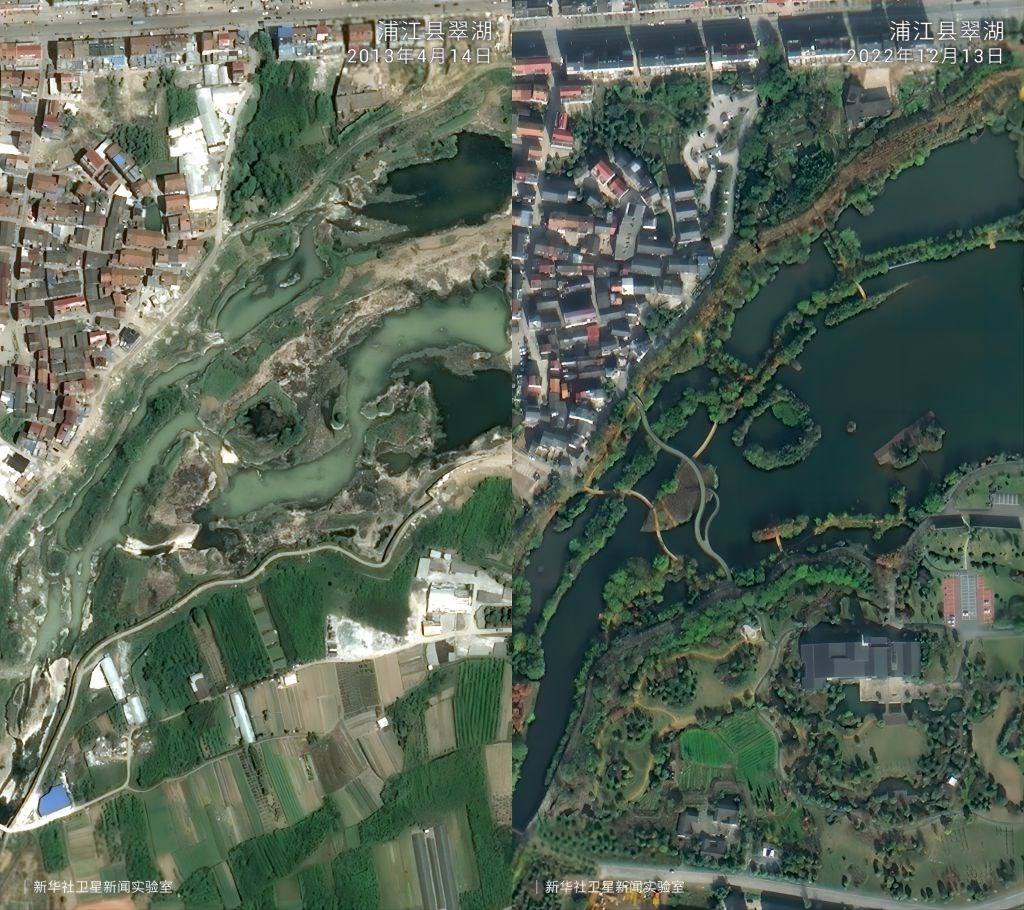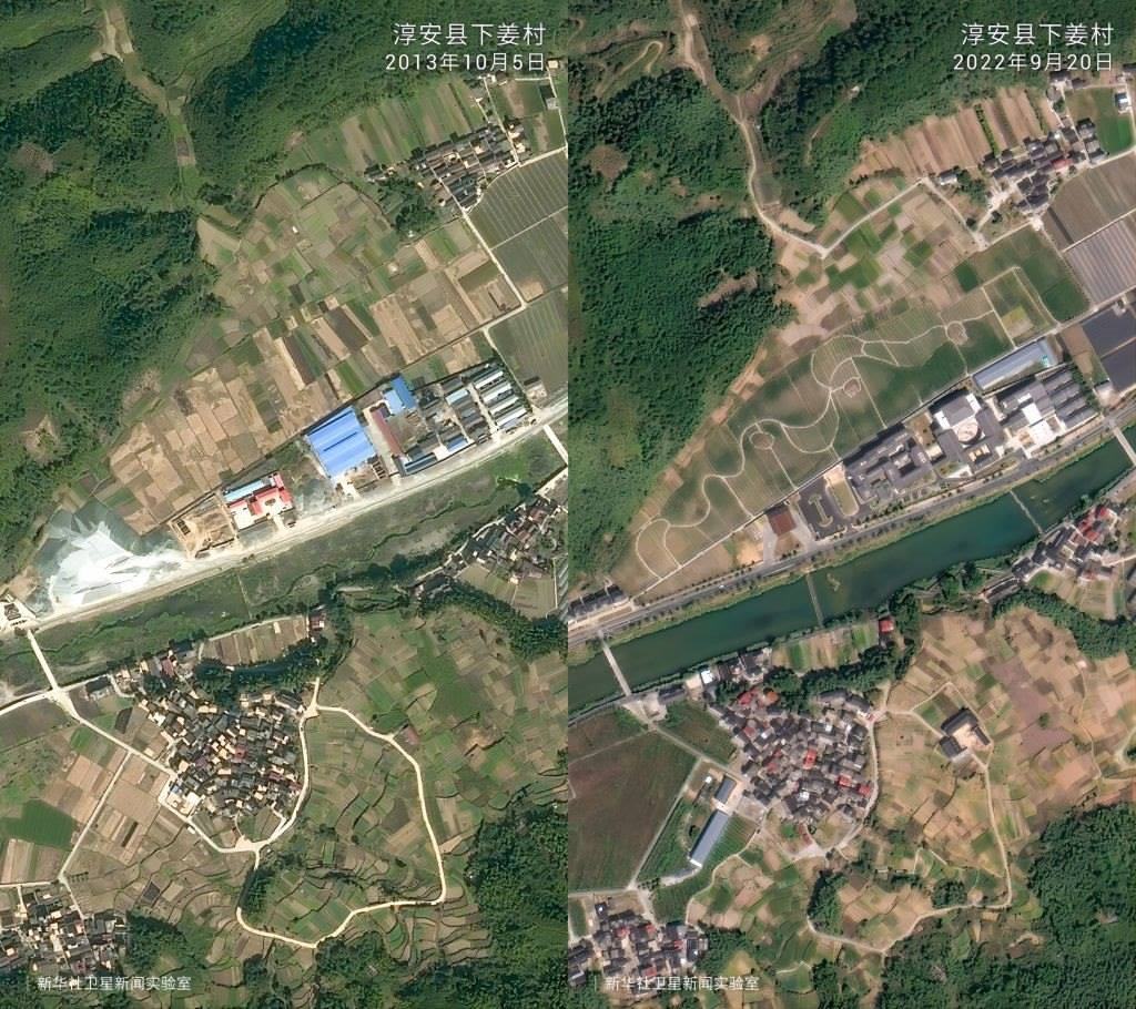 一組組衛(wèi)星對比圖見證了歲月流轉中的鄉(xiāng)村巨變。放眼浙江廣闊大地,這場跨越20年的美麗接力正煥發(fā)新的生機。
