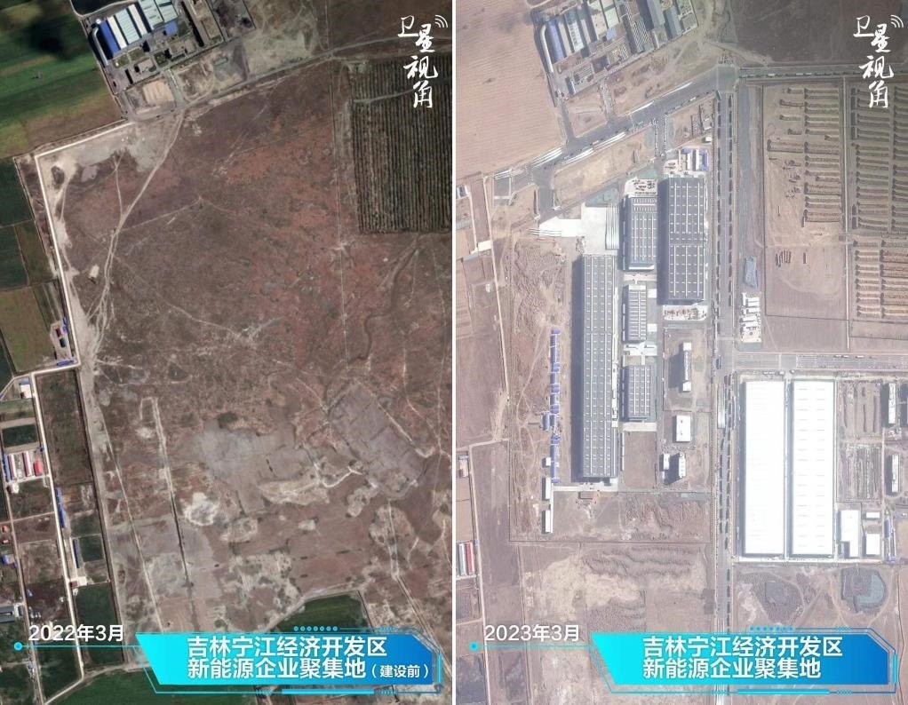 ↑2023年與2022年相比,吉林寧江經(jīng)濟開發(fā)區(qū)的一片空地建設成頗具規(guī)模的新能源企業(yè)聚集地。