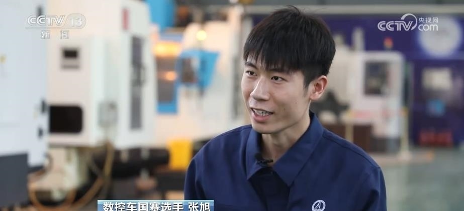 像王浩一樣渴望技能成才、技能報國的,還有22歲的小伙子張旭。他是航天材料及工藝研究所的一名技能工人,代表天津參加數(shù)控車(國賽精選)項目的比賽。