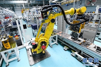 在位于哈爾濱市平房區(qū)哈爾濱東安汽車動(dòng)力股份有限公司生產(chǎn)車間,工業(yè)機(jī)器人在生產(chǎn)作業(yè)。