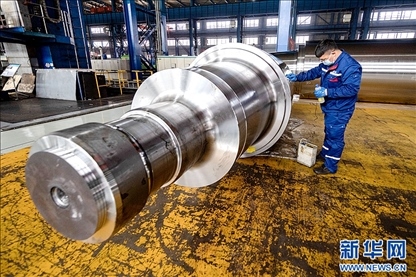 在位于黑龍江省齊齊哈爾市的中國(guó)一重生產(chǎn)車間內(nèi),工人正在進(jìn)行生產(chǎn)作業(yè)。