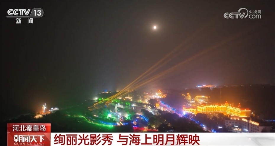 海上生明月,天涯共此時(shí)。在9月29日中秋夜,一輪圓月從海上升起,皎潔的月光照在北戴河的海灣之上。為觀賞中秋明月,大批的游客來(lái)到了北戴河當(dāng)?shù)刈罴训馁p月地鴿子窩公園。為使中秋夜變得更璀璨,鴿子窩公園打造了以“海上奇幻夜”為主題的光影秀。絢麗的燈光流光溢彩,與中秋明月相輝映,碧海、月色與光影給前來(lái)賞月的游客帶來(lái)了旅游新體驗(yàn)。