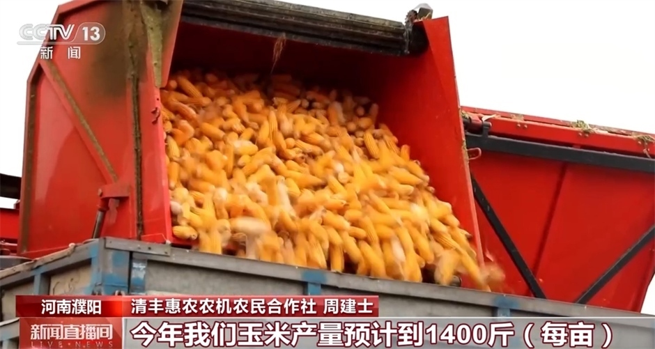 在濮陽市清豐縣固城鎮(zhèn)張莊村,三臺莖穗兼收玉米收割機在田間來回穿梭,一片繁忙。