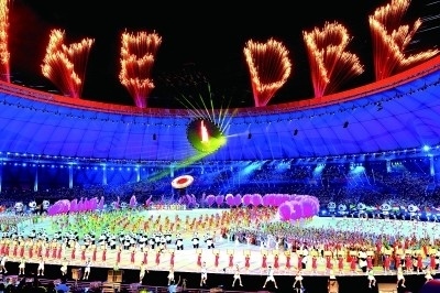 成都大運(yùn)會開幕式現(xiàn)場的文藝演出。本報記者 郭俊鋒攝/光明圖片
