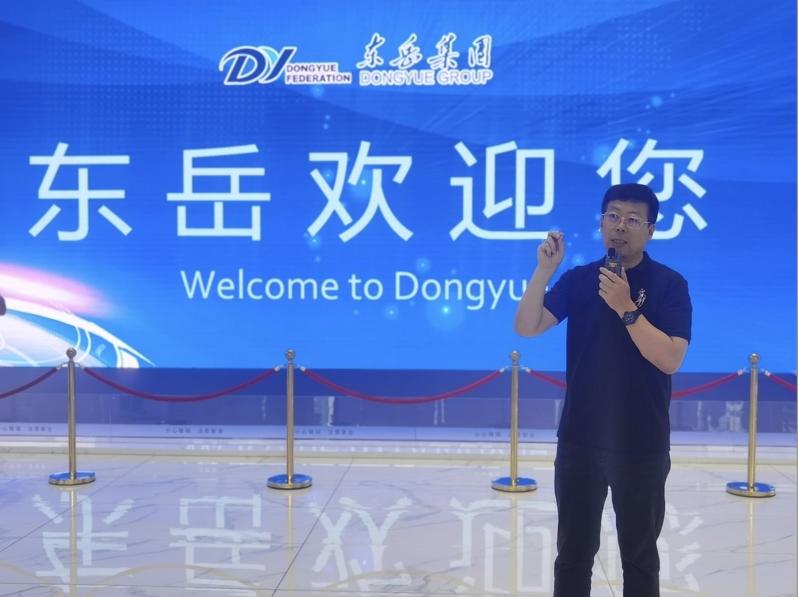 “高質量發(fā)展調研行”采訪團來到位于山東淄博市的山東東岳氟硅科技集團調研,集團副總裁李玉文在做講解