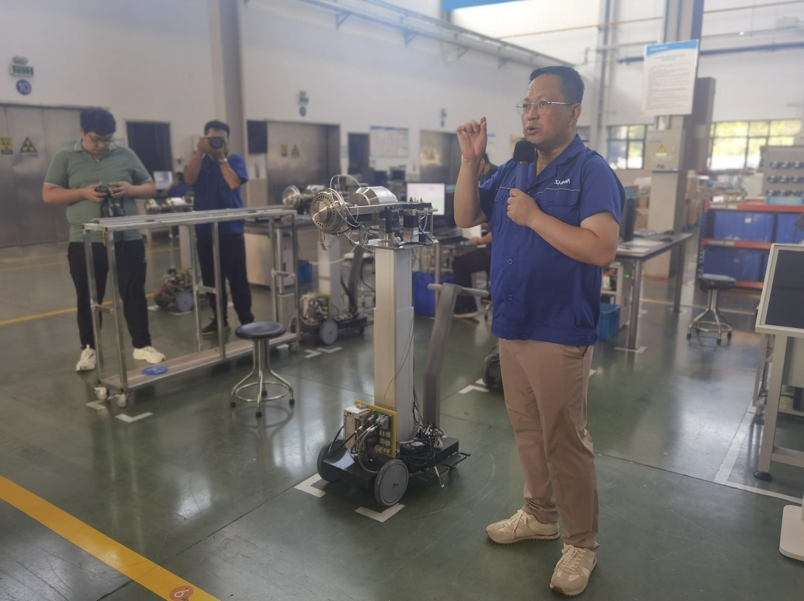“高質量發(fā)展調研行”采訪團來到位于山東淄博市的山東新華醫(yī)療器械股份有限公司調研,工作人員王波在進行講解