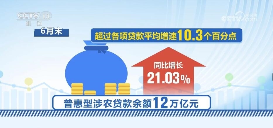 上半年,涉農(nóng)貸款余額也保持較快增長(zhǎng)。6月末,全國(guó)涉農(nóng)貸款余額54.64萬(wàn)億元,同比增長(zhǎng)16.0%。其中,普惠型涉農(nóng)貸款余額12萬(wàn)億元,同比增長(zhǎng)21.03%,超過各項(xiàng)貸款平均增速10.3個(gè)百分點(diǎn)。
