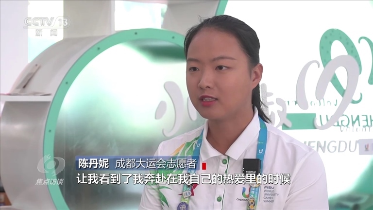 陳丹妮:“參與志愿服務的每一天我沒有覺得特別累,這是成都大運會帶給我的一次體驗,讓我看到了我奔赴在自己的熱愛里的時候,那種熱愛帶給我的力量,看到他們的笑容,這一刻所有人都會覺得所有的辛苦都很值得?!?/p>