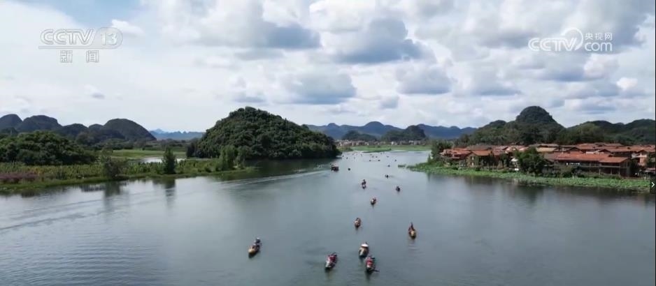 在云南普者黑,萬(wàn)畝荷塘花開正盛,游人不僅可以泛舟賞荷嬉戲,還能進(jìn)入當(dāng)?shù)貪O村感受彝族撒尼人生活文化和非遺技藝。