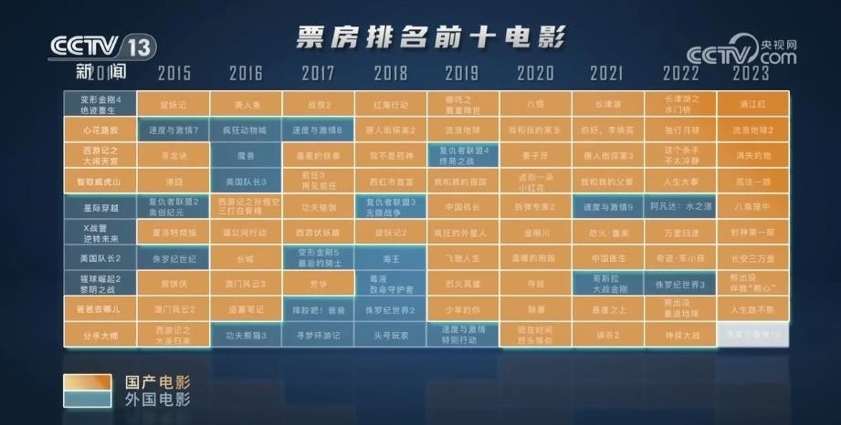 央視網(wǎng)消息:國家電影局最新發(fā)布統(tǒng)計(jì)數(shù)據(jù)顯示,2023年暑期檔電影票房已達(dá)178億元,超過2019年暑期檔總票房,創(chuàng)歷史新高。是什么點(diǎn)燃了觀眾對(duì)電影的熱情? 通過對(duì)近10年票房前10名的電影片尾字幕提取,用數(shù)據(jù)洞察國產(chǎn)電影的發(fā)展。