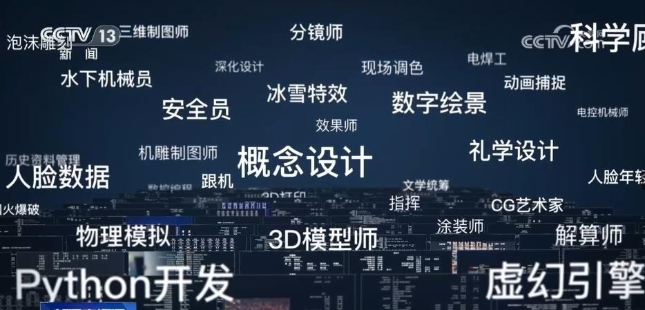 從30多萬字的文本中,AI算法識(shí)別出了300多個(gè)電影產(chǎn)業(yè)工種,一條隱藏在幕后的國產(chǎn)電影產(chǎn)業(yè)鏈在眼前展開。這是一個(gè)電影產(chǎn)業(yè)鏈越分越細(xì)、工種越增越多的過程。20多個(gè)新的工種在這10年間誕生,動(dòng)作捕捉、虛擬拍攝、數(shù)控編程、3D打印等,其中,七成以上的新增工種跟數(shù)字化技術(shù)的進(jìn)步有關(guān)。