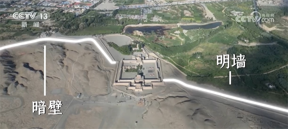 嘉峪關(guān)關(guān)城景區(qū)講解員 馬雪:站在這個(gè)地方,大家就可以看到嘉峪關(guān)關(guān)城從這里向南邊一直延伸出去了一道邊墻,這一段城墻因?yàn)楸晃鬟叺臄橙艘谎劬涂梢园l(fā)現(xiàn),所以稱之為“明墻”,還有一道防線,我們現(xiàn)在看不見,它叫作“暗壁”,從東柵門的烽火臺(tái)處一直延伸到黑山的半山腰,人無法攀登的地方。那這一段“明墻暗壁”的修建,屬于嘉峪關(guān)的雙重防線,體現(xiàn)了中國古代工匠的智慧。