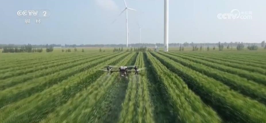 在山東省德州市武城縣,2萬畝復(fù)合種植的玉米和大豆長勢旺盛。李希軍2023年種植的1600多畝地,采用了玉米4行、大豆4行,兩種作物帶狀間作模式。他告訴記者,這段時間當?shù)亟涤觐l繁,部分地塊出現(xiàn)褐斑病、玉米螟蟲等病蟲害。李希軍第一時間請來農(nóng)技人員和飛防隊進行針對性防控作業(yè)。
