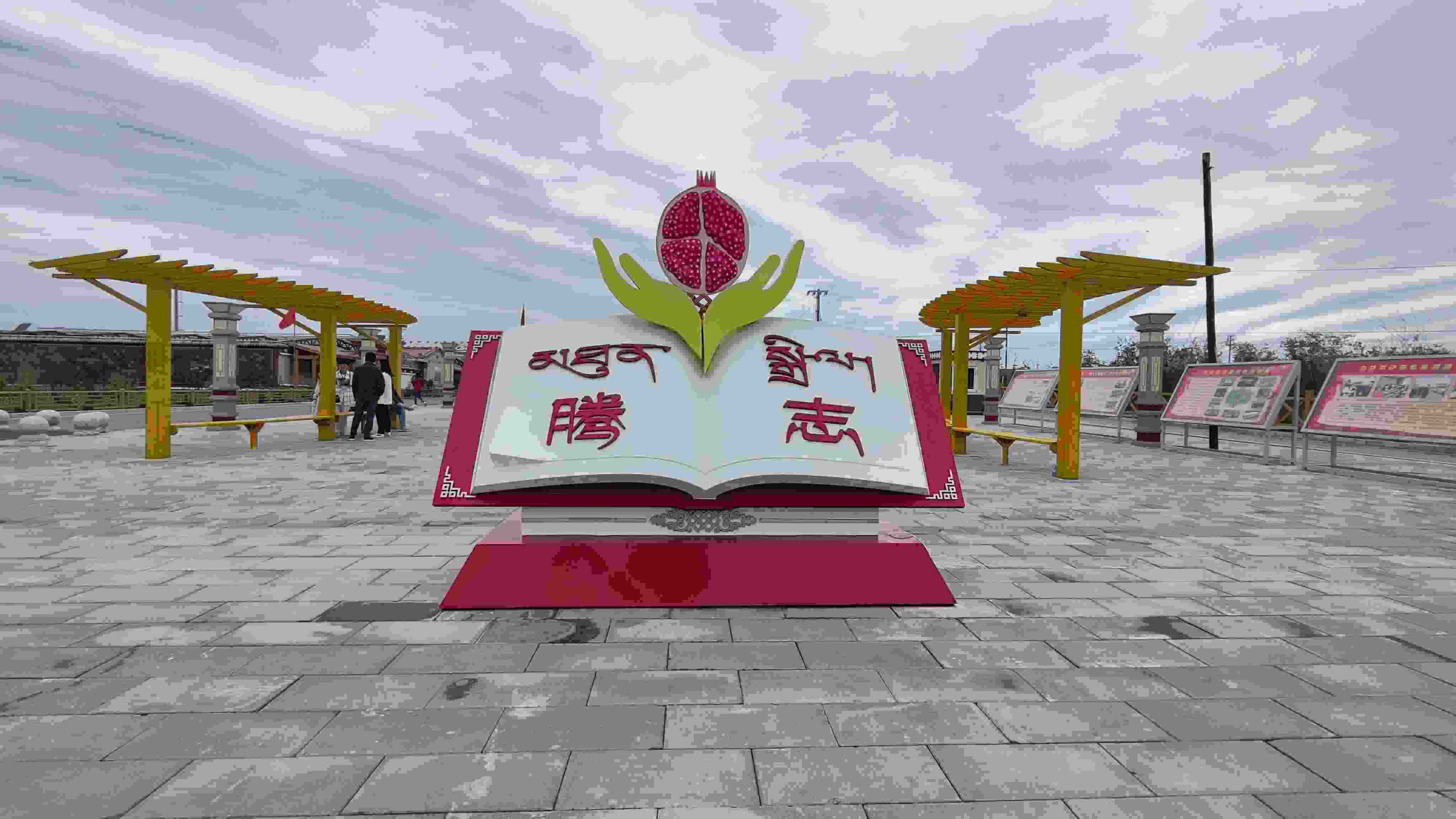 這些向好的變化離不開每一位村民的團(tuán)結(jié)友愛、互幫互助。村口的廣場(chǎng)中間有一本打開的書,書頁上一雙手托舉著一個(gè)鮮艷的石榴,這就是果洛藏貢麻村新修建的“騰志”廣場(chǎng)?!膀v志”在藏語中意為“團(tuán)結(jié)”,這也寓意著各民族像石榴籽一樣緊緊抱在一起,共育團(tuán)結(jié)花,共享幸福果。