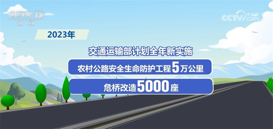交通運(yùn)輸部今天發(fā)布數(shù)據(jù),“十三五”以來,全國共完成農(nóng)村公路安全生命防護(hù)工程99萬公里;改造農(nóng)村公路危橋4.4萬余座,農(nóng)村公路危橋比例從2015年底的14.6%降至2022年底的2.8%。
