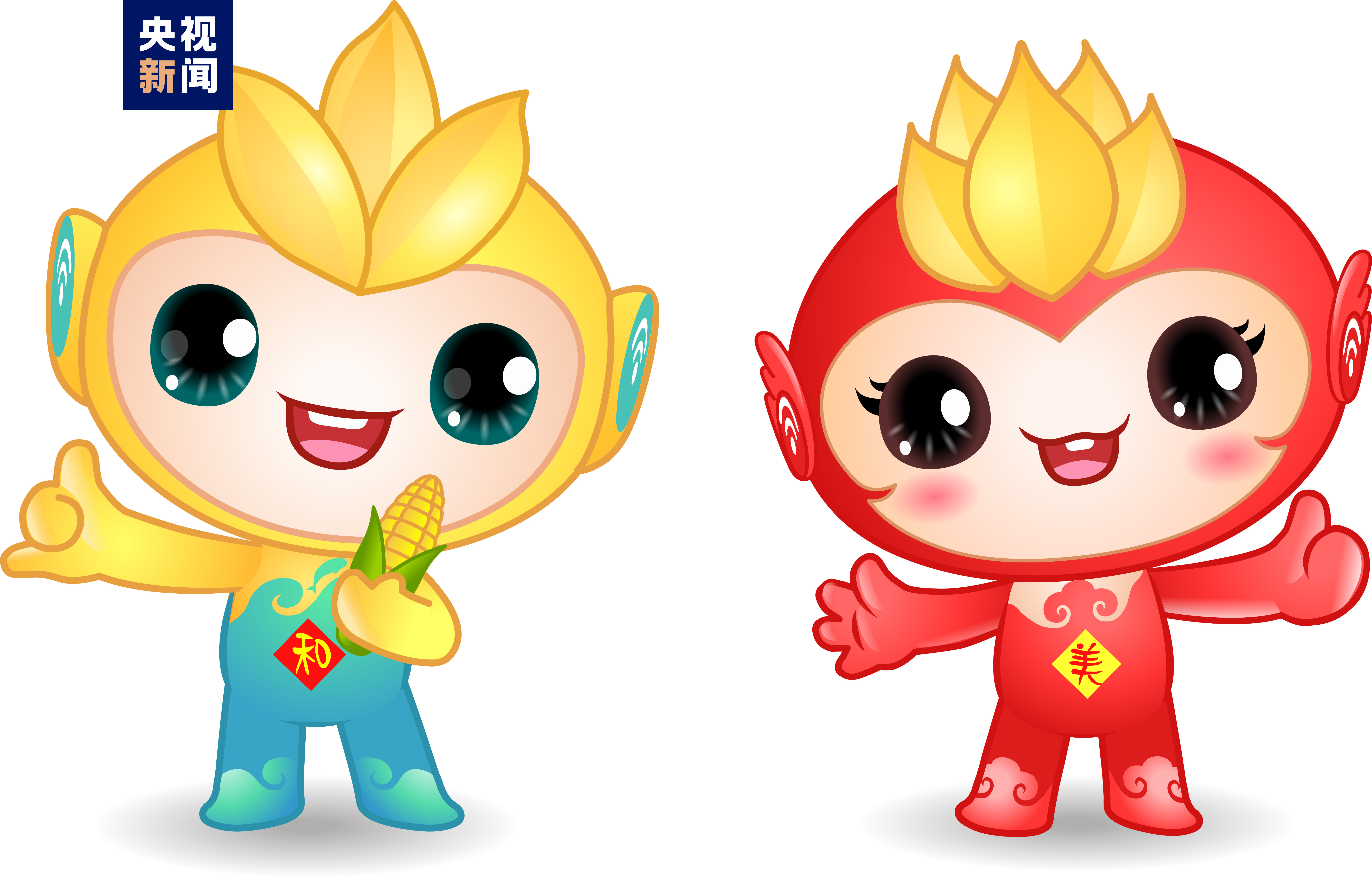 此外,今年中國農(nóng)民豐收節(jié)的吉祥物是“和和”“美美”兩個(gè)卡通IP形象,表達(dá)了億萬農(nóng)民甜甜美美的豐收喜悅、和和睦睦的幸福生活。IP卡通形象的整體設(shè)計(jì),以三大主糧“稻谷、麥穗、玉米”為造型元素,突出豐收節(jié)屬性,融入傳統(tǒng)文化符號與現(xiàn)代信息符號,傳遞豐收、喜悅、吉慶和農(nóng)業(yè)現(xiàn)代化等寓意。其中,“和和”是一個(gè)男孩形象,頭上三粒稻谷,既代表種子,又代表三生萬物,繁榮不息。藍(lán)色波浪代表長江,江豚魚躍而上,寓意長江之畔,魚米之鄉(xiāng),風(fēng)調(diào)雨順?!懊烂馈笔且粋€(gè)女孩形象,頭上五顆麥粒,寓意代表五谷豐登,表達(dá)了對農(nóng)民的最美好祝愿,融入了翅膀元素,昭示著中國農(nóng)業(yè)展翅騰飛,開創(chuàng)新未來。吉祥物的眼睛和耳朵上分別含有信息、數(shù)字科技元素,寓意以科技眼、智慧耳賦能現(xiàn)代農(nóng)業(yè)騰飛,反映了科技賦能、智慧富農(nóng)的新時(shí)代現(xiàn)代農(nóng)業(yè)特征。色彩以黃色和紅色為主,分別代表耕地和喜慶,也是豐收黃和中國紅,是農(nóng)民和豐收的最直觀體現(xiàn)。起名“和和、美美”,表達(dá)了億萬農(nóng)民喜氣洋洋的豐收喜悅、幸福和美的美好生活。