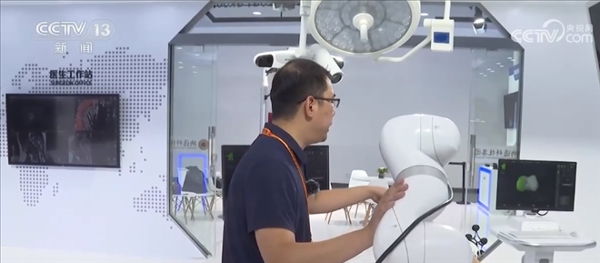 總臺(tái)記者 王豐:這里主要呈現(xiàn)的是一個(gè)智能手術(shù)室的系統(tǒng),這是一套幫助醫(yī)生進(jìn)行精準(zhǔn)手術(shù)計(jì)劃的設(shè)備,比如說我們可以利用一張X光片,一張CT或者一張核磁影像,就可以還原出一個(gè)3D的影像,醫(yī)生通過3D的建模,可以精準(zhǔn)地看到病灶所在的位置,包括他如何下刀,來精準(zhǔn)地制定手術(shù)計(jì)劃。