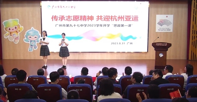 8月31日,廣州市第九十七中學(xué)開展以“傳承志愿精神、共迎杭州亞運(yùn)”為主題的開學(xué)“思政第一課”。