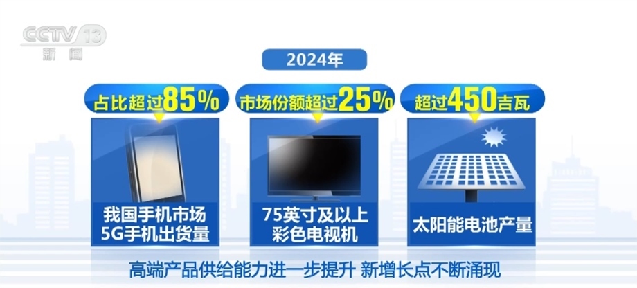 方案中明確提出,2023年—2024年,計算機、通信和其他電子設備制造業(yè)增加值平均增速5%左右,電子信息制造業(yè)規(guī)模以上企業(yè)營業(yè)收入突破24萬億元。2024年,我國手機市場5G手機出貨量占比超過85%,75英寸及以上彩色電視機市場份額超過25%,太陽能電池產(chǎn)量超過450吉瓦,高端產(chǎn)品供給能力進一步提升,新增長點不斷涌現(xiàn)。