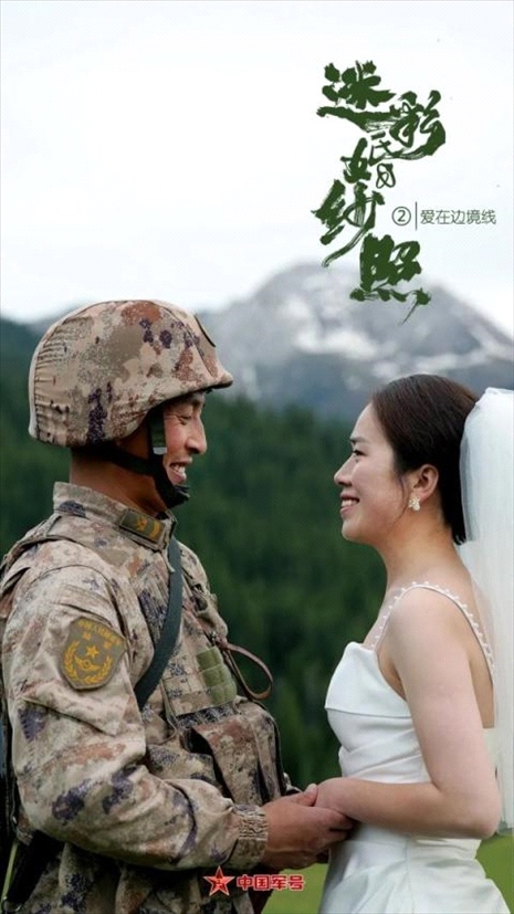 陳健駐守在新疆軍區(qū)紅海溝邊防連,與妻子丁佳結(jié)婚8年,聚少離多,一直遺憾沒有拍過婚紗照。妻子丁佳決定給他一個驚喜——帶上婚紗,跨越幾千公里,在他巡邏的路上與他“偶遇”!迷彩婚紗照又有“天花板”了!