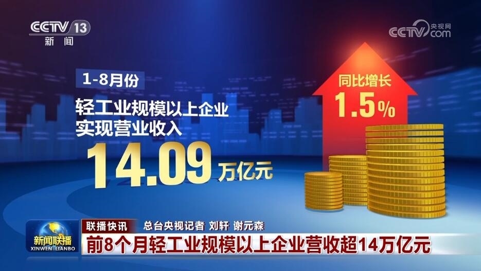前8個(gè)月輕工業(yè)規(guī)模以上企業(yè)營(yíng)收超14萬億元