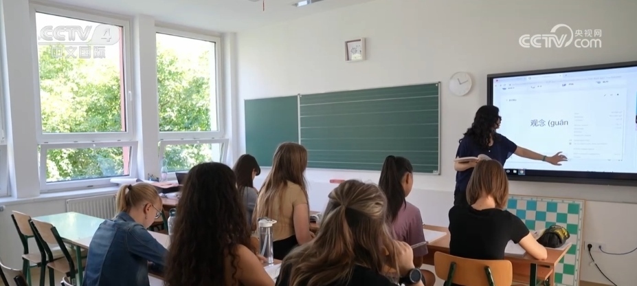 這是位于匈牙利首都布達佩斯的一所匈中雙語學(xué)校。周一上午的一節(jié)中文課,學(xué)生們正在學(xué)習(xí)一些職場常用的中文,每個人都聽得聚精會神。這所學(xué)校也是納入匈牙利國民教育體系的公立學(xué)校,在這里漢語是必修課。