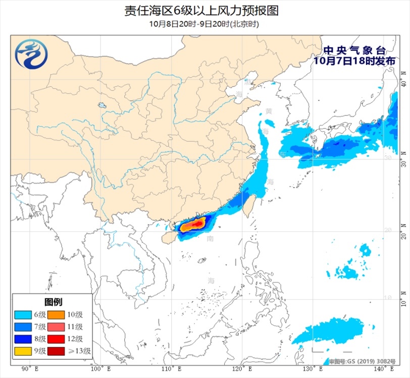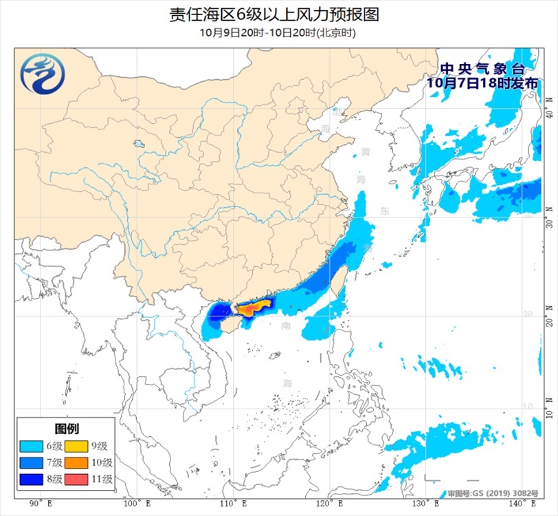 7日夜間至8日白天,廣東中部和東部沿海、粵閩交界沿海及渤海北部的部分海域?qū)⒂?~10級的雷暴大風(fēng)。