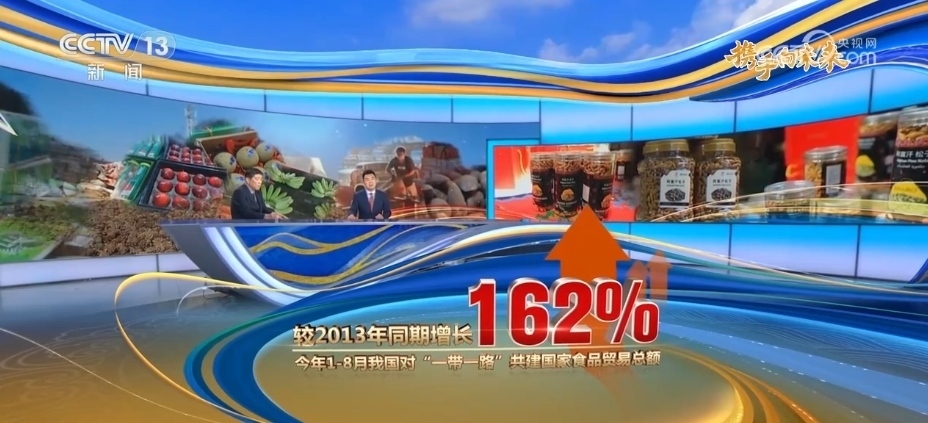 162%。2023年1—8月,我國(guó)對(duì)“一帶一路”共建國(guó)家食品貿(mào)易總額已經(jīng)達(dá)到5538.2億元,較2022年同期增長(zhǎng)10.4%,較2013年同期增長(zhǎng)達(dá)到了162%。