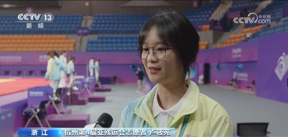 杭州第4屆亞殘運(yùn)會(huì)志愿者 盧筱苑:經(jīng)過前期的線上培訓(xùn)以及線下的實(shí)操訓(xùn)練,我們已經(jīng)掌握了如何更好地服務(wù)殘障人士,我們需要更加熟悉場館的環(huán)境,為他們提供更加準(zhǔn)確的指引,提供更加細(xì)微周到的服務(wù)。