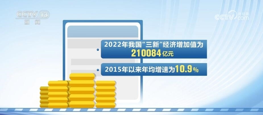 2022年,我國“三新”經(jīng)濟增加值為210084億元,2015年以來年均增速為10.9%,比同期GDP現(xiàn)價增速高2.5個百分點,相當于GDP的比重為17.36%?!叭隆苯?jīng)濟不斷發(fā)展,已成為帶動經(jīng)濟轉(zhuǎn)型升級、增強經(jīng)濟活力的重要力量。