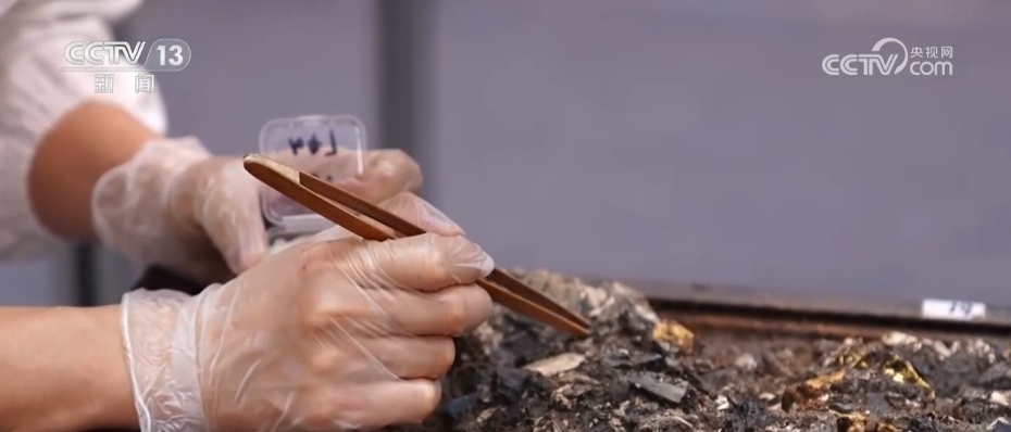 文物碎片提取出來后,很多都不到指甲蓋大小。工作人員需要將它們進行編號,再拍照、存檔,隨后進入初步的清理階段。