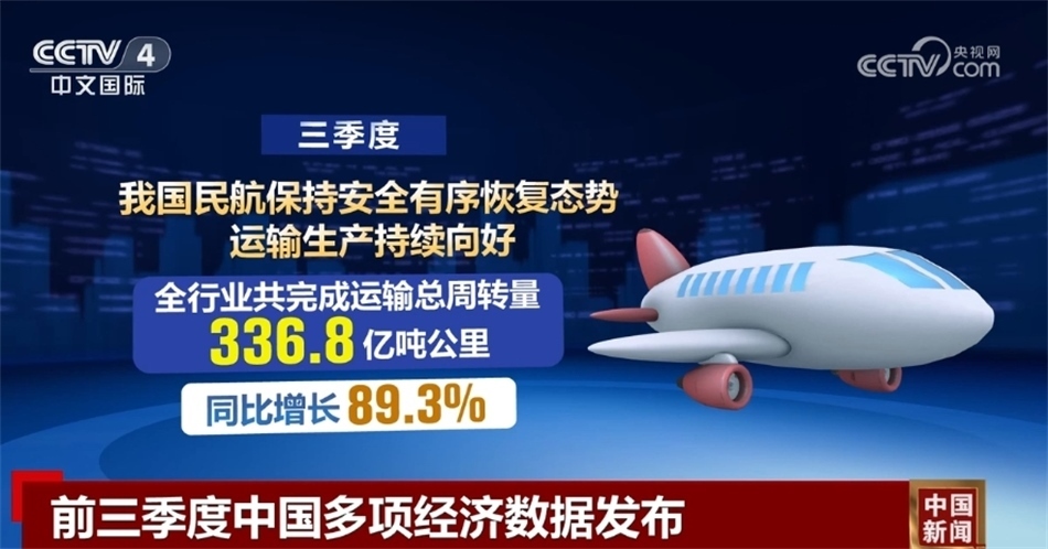 三季度,中國民航保持安全有序恢復態(tài)勢,運輸生產(chǎn)持續(xù)向好,全行業(yè)共完成運輸總周轉(zhuǎn)量336.8億噸公里,同比增長89.3%;客運市場需求旺盛,全行業(yè)共完成旅客運輸量1.8億人次,同比增長108.3%,行業(yè)客運規(guī)模創(chuàng)季度歷史新高。