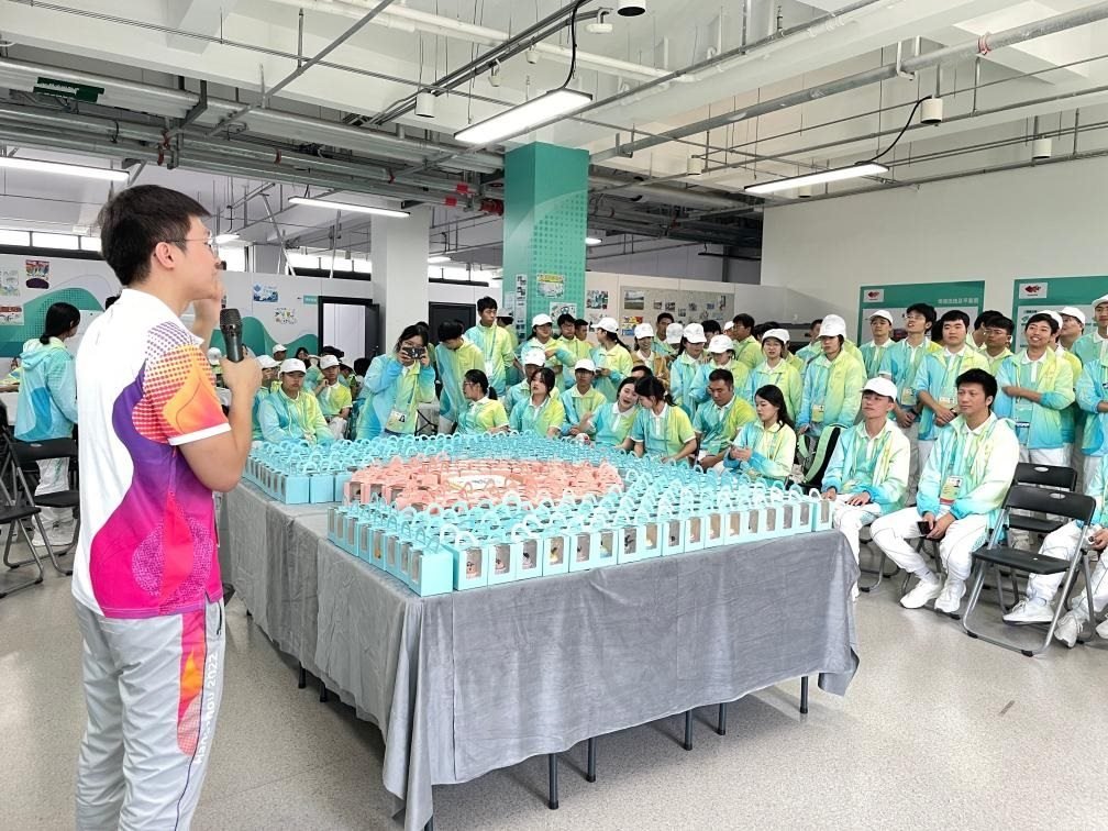 在富陽水上運(yùn)動(dòng)中心,和他一樣參加杭州亞運(yùn)會(huì)和亞殘運(yùn)會(huì)志愿服務(wù)工作的同學(xué)還有300多名。因與“親和”諧音而被稱作“小青荷”的志愿者們,身著白綠相間的統(tǒng)一服裝,在青山綠水間上演著“小荷才露尖尖角”。
