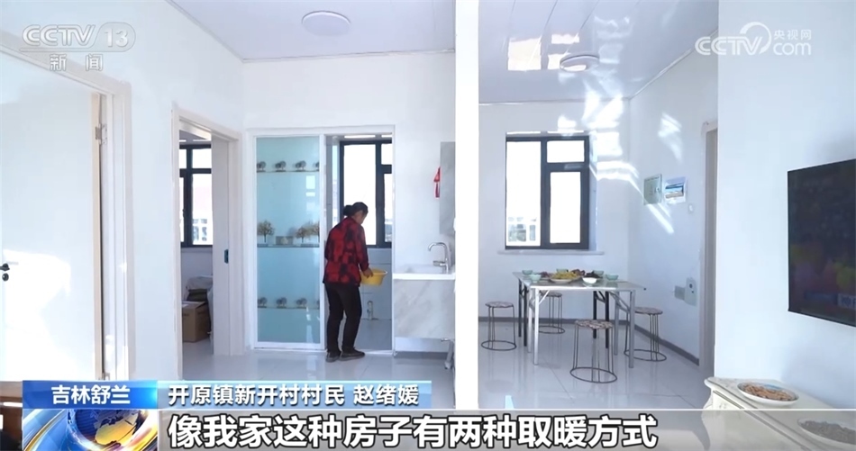 吉林省舒蘭市開(kāi)原鎮(zhèn)新開(kāi)村村民 趙緒媛:政府設(shè)計(jì)房子的時(shí)候就問(wèn)了我們的意見(jiàn),像我家的房子有兩種取暖方式,一種是燒火做飯,炕就熱乎了,另一種是電取暖,直接帶動(dòng)地?zé)?,用的是峰谷電價(jià),價(jià)格也合理。