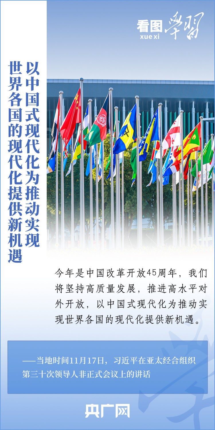 當(dāng)?shù)貢r間11月17日上午,亞太經(jīng)合組織第三十次領(lǐng)導(dǎo)人非正式會議在美國舊金山舉行。國家主席習(xí)近平出席會議并發(fā)表題為《堅守初心 團結(jié)合作 攜手共促亞太高質(zhì)量增長》的重要講話。習(xí)主席在講話中全面闡述了中國對深化亞太合作、促進地區(qū)和世界經(jīng)濟增長的重要主張,以“四個堅持”提出多項務(wù)實舉措,希望同各方一道努力,共同打造亞太下一個“黃金三十年”。一起來學(xué)習(xí)!