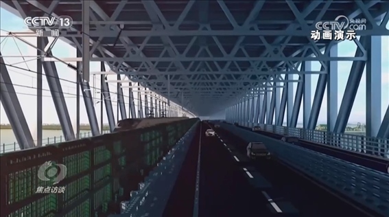 而說(shuō)常泰長(zhǎng)江大橋是個(gè)超級(jí)工程,不僅因?yàn)樗小翱缍茸畲蟆钡倪@個(gè)頭銜,更因?yàn)樗鼡碛卸喾N功能,在這座上下兩層的橋上,上層為六車道高速公路,下層為兩線鐵路和四車道普通公路,這也是長(zhǎng)江上首座“三位一體”的跨江大橋。那么,多種功能的設(shè)計(jì)又是出于什么樣的考慮呢?