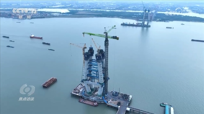 央視網(wǎng)消息(焦點(diǎn)訪談):近些年來(lái),中國(guó)在多個(gè)領(lǐng)域創(chuàng)造了大量的世界之最。這一個(gè)個(gè)的 “世界首次”“世界第一”深刻地改變了中國(guó),也令世界驚嘆。從今天起《焦點(diǎn)訪談》欄目推出“登攀”系列節(jié)目,我們來(lái)看一看中國(guó)奇跡誕生背后的故事?!胺晟介_(kāi)路、遇水架橋”,這是中國(guó)基建人的日常,他們不斷突破,創(chuàng)造了一個(gè)個(gè)登頂世界之最的基建名場(chǎng)面。今天我們要講的是一座修建當(dāng)中的長(zhǎng)江大橋——位于江蘇常州和泰州之間的常泰長(zhǎng)江大橋,作為世界上在建的最大跨度的公鐵兩用斜拉橋,這座大橋在建設(shè)的過(guò)程當(dāng)中遇到了很多困難,也頻頻上演著突破和創(chuàng)新。