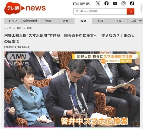 ·據(jù)日媒報道,27日,日本參議院預算委員會公開答辯中,數(shù)字大臣河野太郎在回答問題時,拿出手機試圖查詢資料,被委員長叫停。